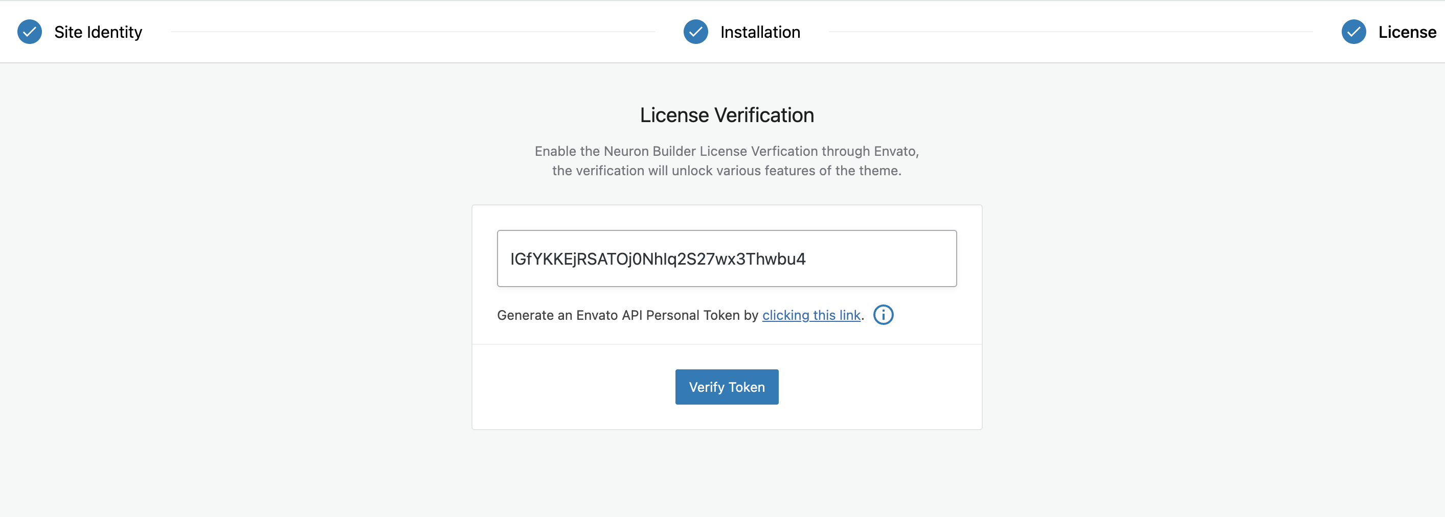 I am experiencing an issue activating a WordPress theme after a recent purchase. I have generated an Envato API Personal Token and entered it into the license verification field. However, upon clicking 'Verify Token,' the page does not change or load a success message, and remains on the same screen. Could you please advise on how to resolve this issue?