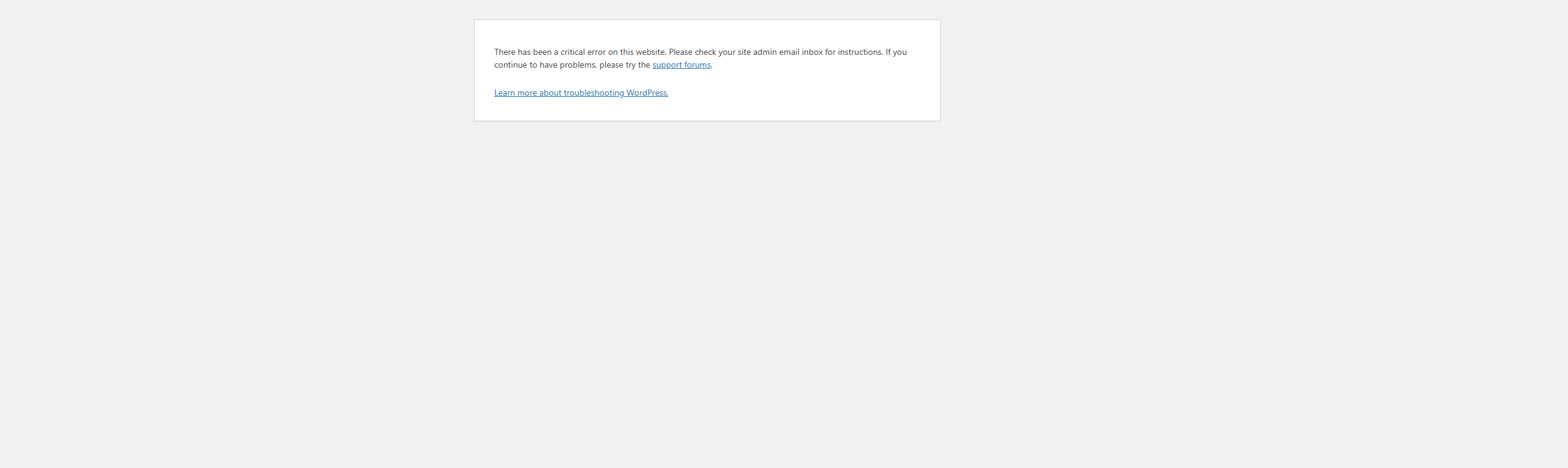 “There has been a critical error on this website. Please check your site admin email inbox for instructions.”