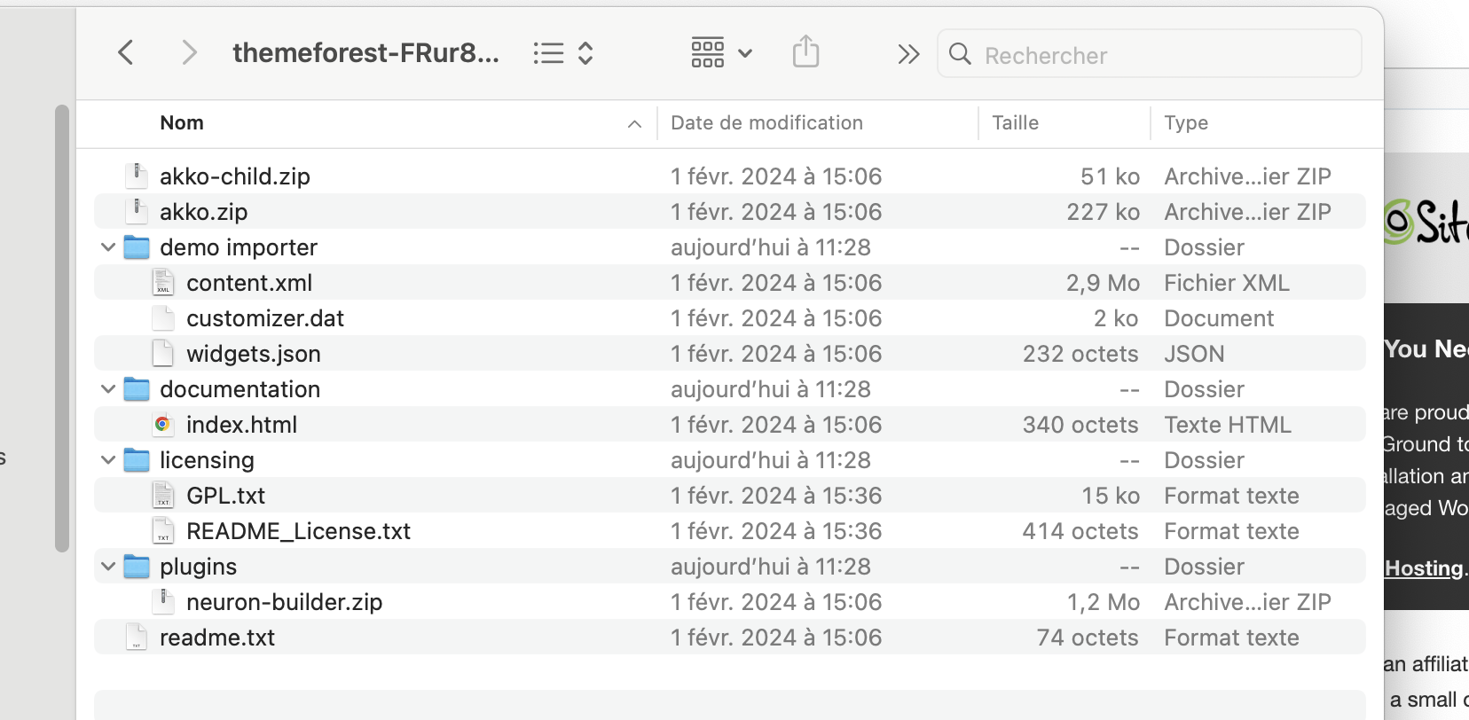 I downloaded the Akko theme (“All files & documentation”) from ThemeForest, but the package is incomplete.